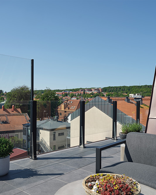 Tarjoamme lasikaiteita tuulisuojalla tai ilman, valmistettu Ruotsissa painottaen muotoilua, laatua, turvallisuutta ja toimivuutta. Edullisimmat ratkaisumme ovat vakiomittaiset osiot. Saatavilla sekä maan tasolle että parvekkeille. Katso kaikki tuotteemme>>