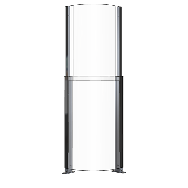 ClickitUpCurved on korkeussäädettävä lasikaide pyöristetyllä muodolla, jonka korkeus on 1100 mm ala-asennossa ja 1900 mm yläasennossa.